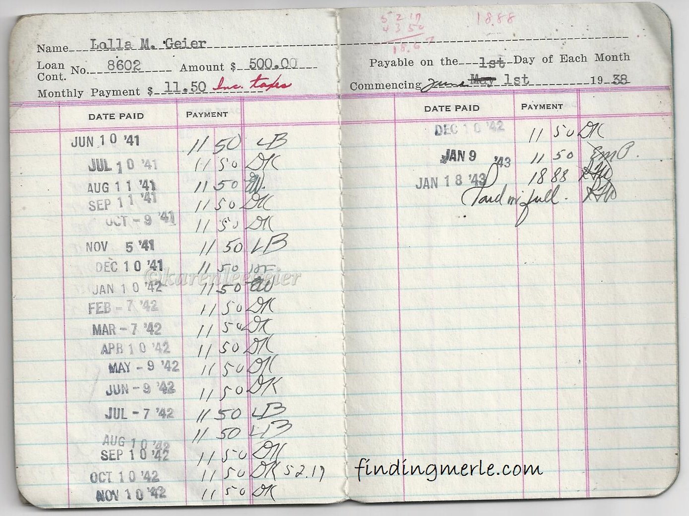 kasae_record of Park house_Lalla to Hazel_beginning in 1939
